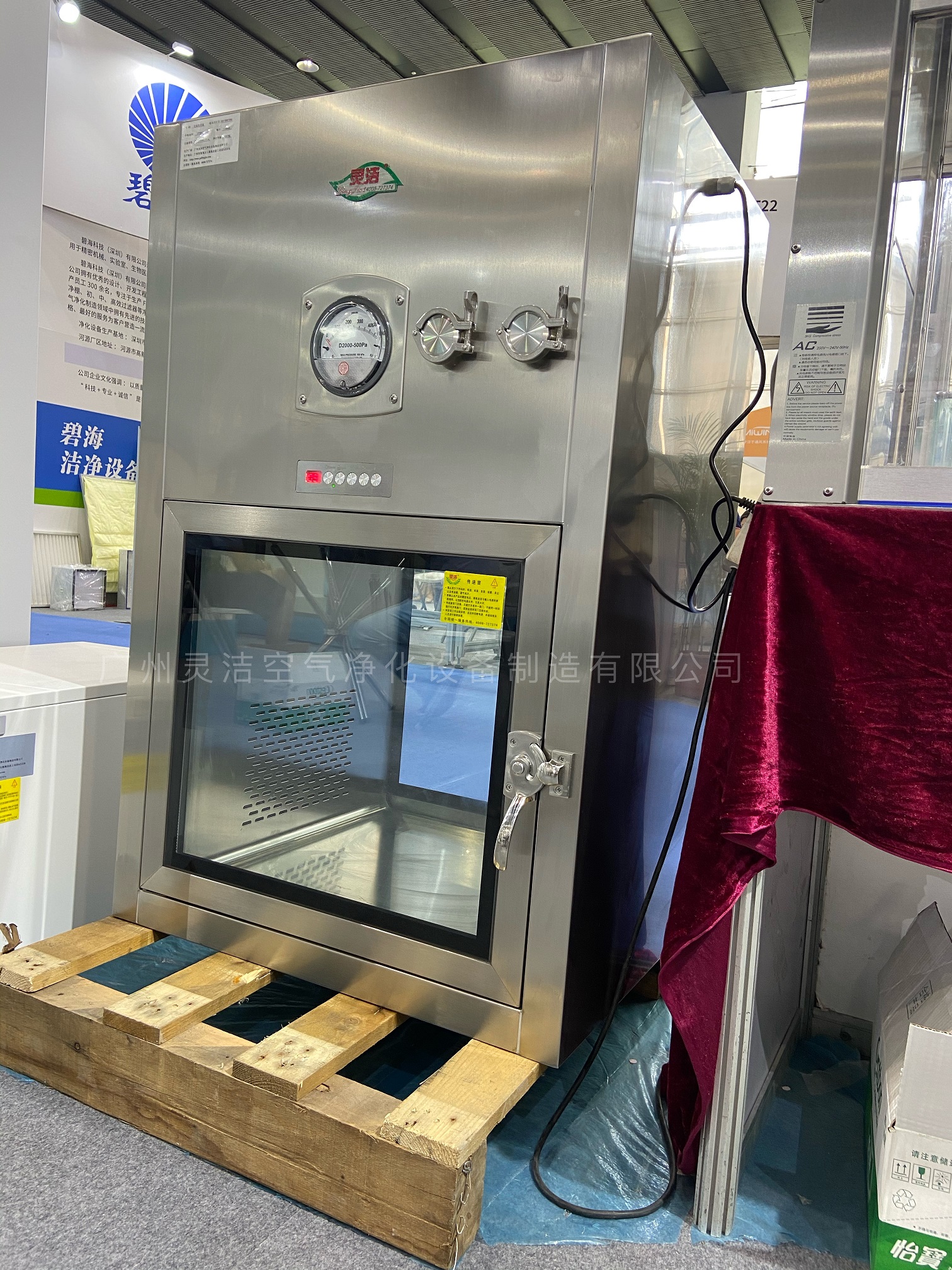 不銹鋼潔凈傳遞窗在傳遞貨物時(shí),頂部吹出高速、潔凈氣流,吹除貨物表面的塵粒,內(nèi)部配有紫外殺菌燈,可以有效的殺除貨物表面的細(xì)菌。待吹淋完成時(shí),方可打開另一扇門取走貨物。潔凈氣流起到氣閘作用,以保證潔凈室室外的空氣不會(huì)影響室內(nèi)的潔凈度。兩側(cè)門通過(guò)電子連鎖控制不可同時(shí)打開,兩側(cè)門內(nèi)側(cè)邊裝有專用密封條,以確保不銹鋼潔凈傳遞窗的氣密性。