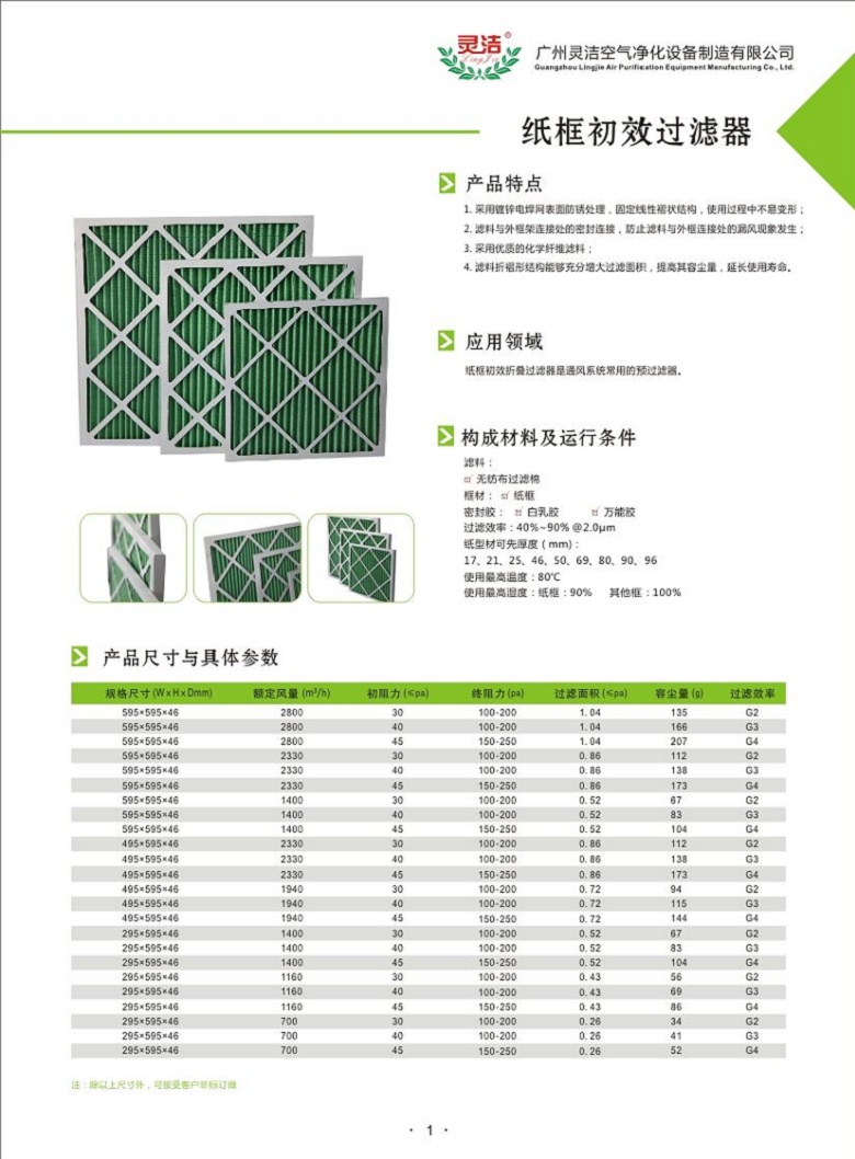 紙框初效過濾器效率:主要分為G1級(jí)、G2級(jí)、G3級(jí)、G4級(jí)四種效率。