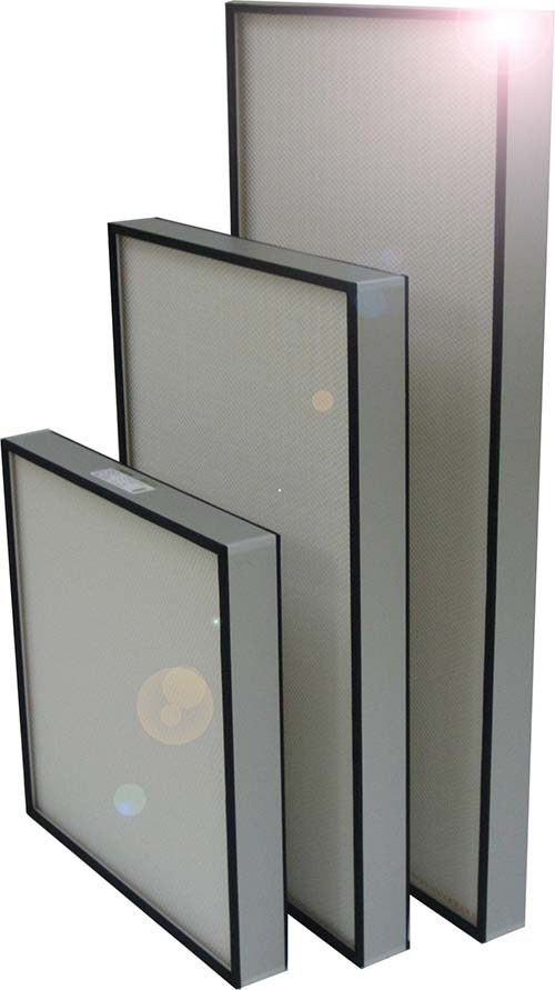 * 無隔板高效過濾器主要用于過濾0.3um以下的空氣懸浮顆粒,作為各種過濾系統(tǒng)的末端過濾;
