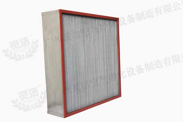 耐高溫高效過濾器用超細(xì)玻璃纖維作濾料,鋁箔作分隔物、耐高溫密封膠,不銹鋼或鍍鋅板外框,外觀美觀。
