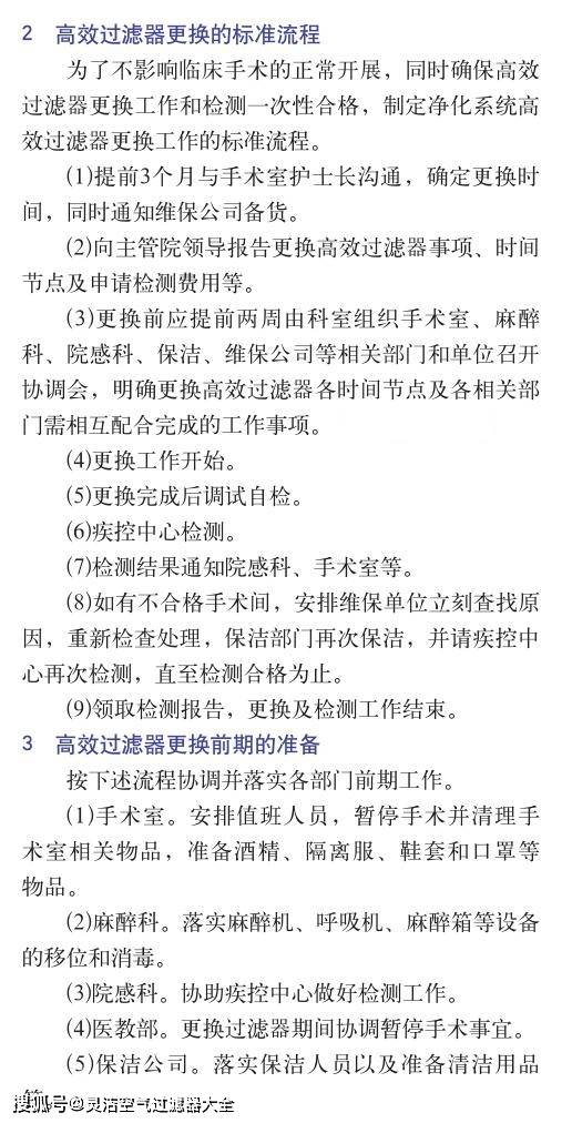 更換手術室凈化系統(tǒng)高效過濾器前1周,再次與各相關部門進行溝通確認更換時間,手術室在更換開始前能否按時暫停手術,安裝和保潔人員落實情況、材料(酒精、抹布以及隔離服等)準備情況等。安排維護人員對手術室凈化系統(tǒng)的新風機組、循環(huán)機組表冷器進行清洗(必要時添加84消毒液進行消毒)、機內(nèi)保潔以及對新風口進行清洗。下面由空氣好凈化工程技術團隊建議更換手術室凈化系統(tǒng)高效過濾器注意事項如下。