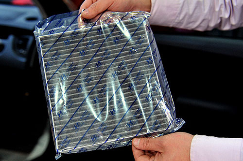 舊的空調(diào)濾芯已經(jīng)很臟了,換一個(gè)新的吧